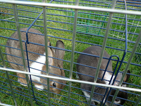 I'm pleased to announce that we are now rabbit-owners once more. We have one more rabbit than we did in London but each rabbit has one fewer dimensions. These beasts were rescued from a shop window and so fortunately there's no contravention of the building rules.